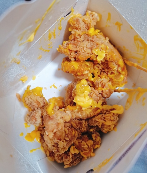 点炸鸡我一般点蒜香、甜辣、蜂蜜芥末,尝试了蜂蜜蛋黄酱,口感太惊艳了,味道香香的甜甜的,入口没有蜂蜜芥末那么激
